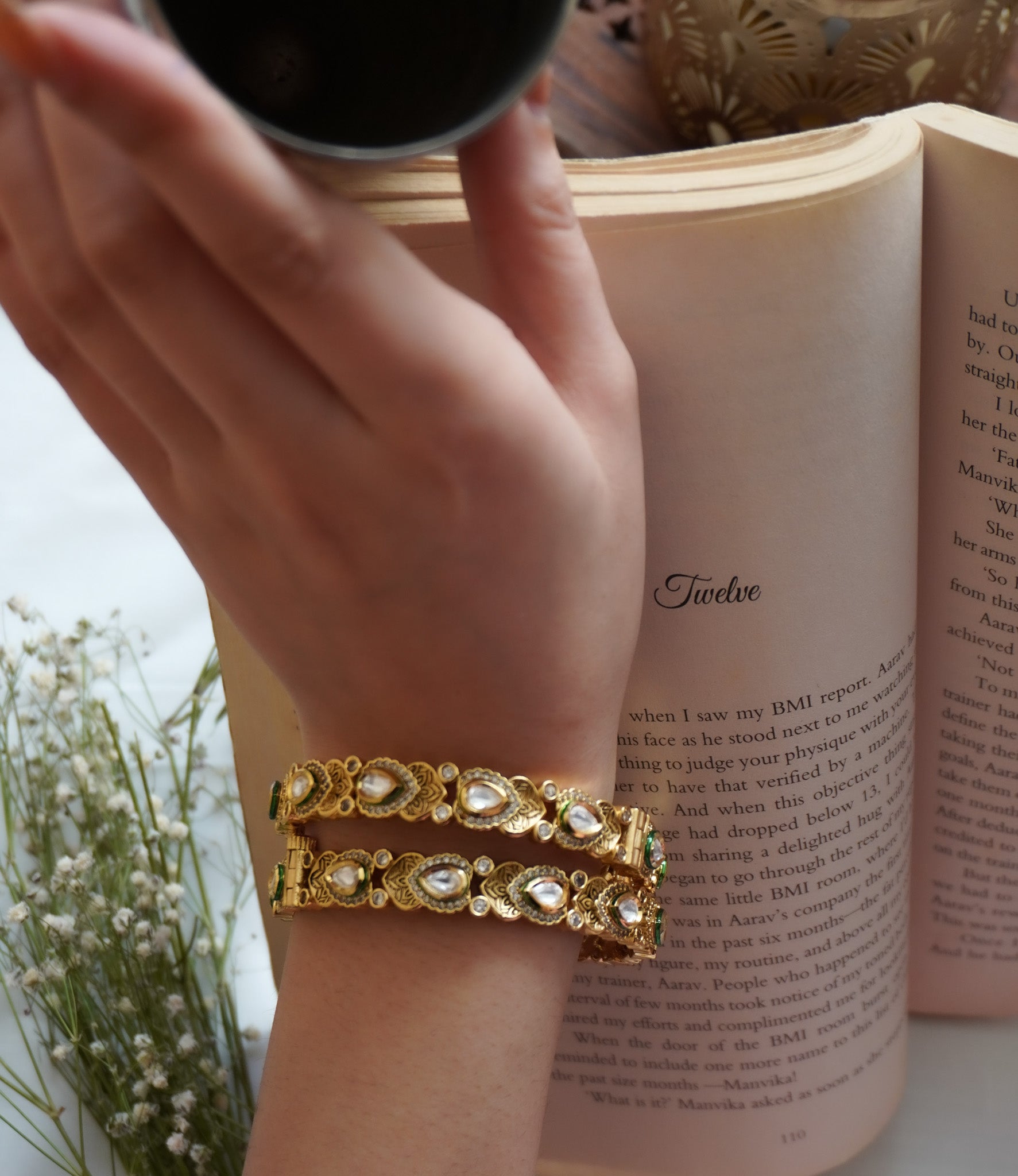 Avia Temple work and Kundan Bangles - Set of 2